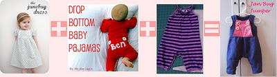 For the bottom I took the pieces I cut out and used the bottom portion of the Drop Bottom Pjs starting at step 12 and ending around step 19. I love this method of snappy crotch hehe. For the pants hem I took a rectangle of fabric about 8 inches wide by the length of the bottom edge of one leg. Then I folded in seam allowances on the sides, folded the rectangle in half wrong sides together, and stitched up the sides. The raw edge was sewn to the raw bottom edge of the pant leg and then top stitched with pink thread like the top.